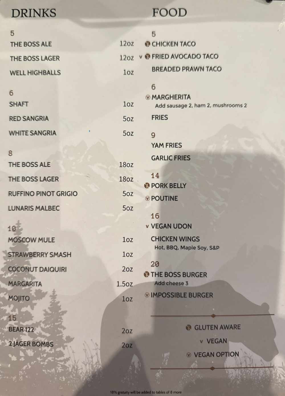 Brazen (403) 760-8540 • 138 Banff Ave • Menu