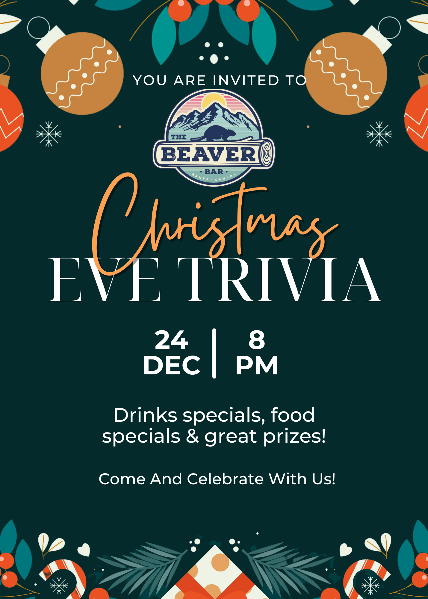 We have Trivia on for Christmas Eve and for New years Eve - Starting 8pm with food & drinks specials all night & great prizes! PosterGet a free Raffle Ticket for every Fernie Brewing purchase! Raffle Ticket